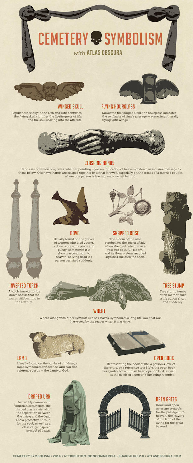 A Visual Guide to Common Cemetery Symbols – This link goes to a Mental Floss that has all sorts of interesting goodies!